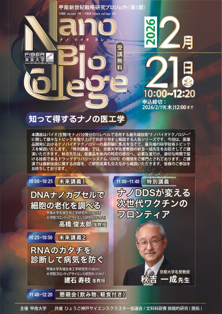 2026年2月21日(土)に、【FIBER】Nano Bio College「知って得するナノの医工学」を甲南大学ネットワークキャンパス東京で開催いたしました。