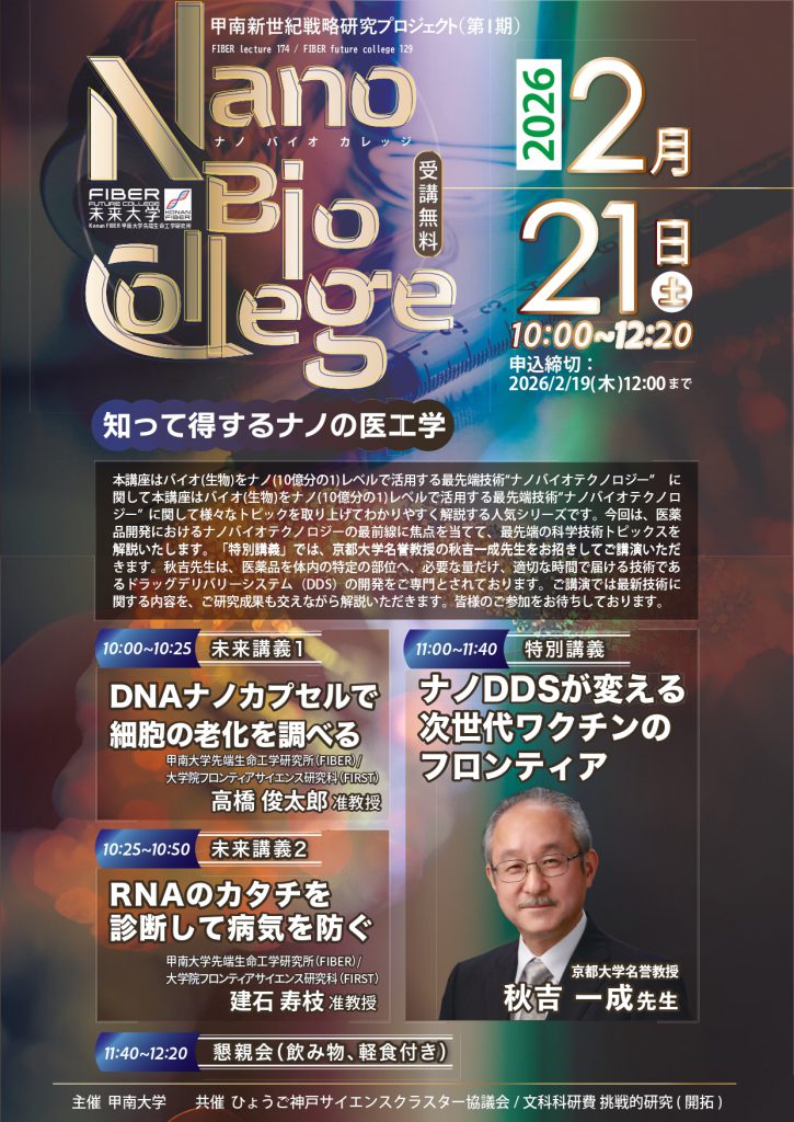 2026年2月21日(土)に、【FIBER】「Nano Bio College “知って得するナノの医工学”」を甲南大学ネットワークキャンパス東京で開催いたしました。